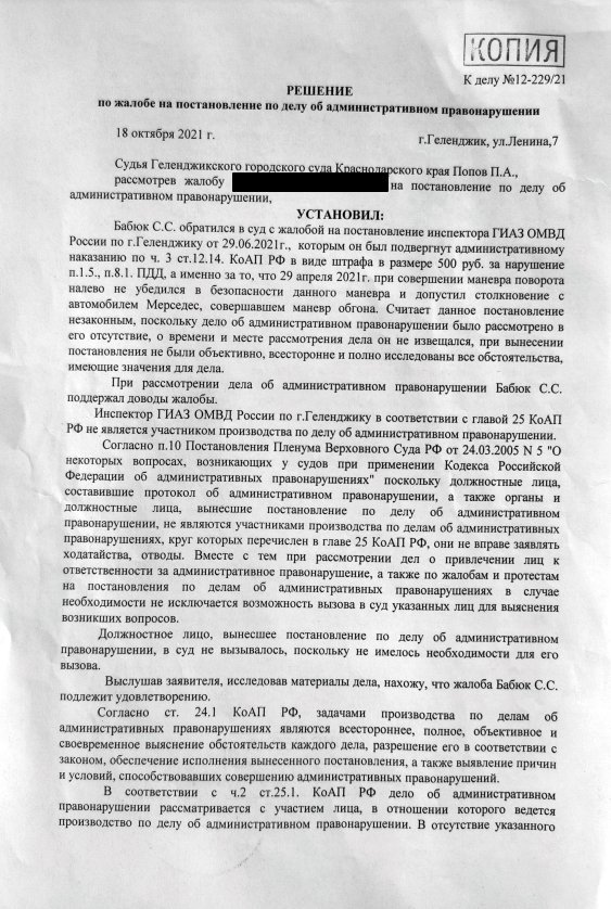 Водитель, совершивший маневр поворота в г.Геленджик, был признан виновным в совершении ПДД РФ, в результате чего произошло столкновение двух ТС. Юристы Право24 обжаловали постановление в суде и оно было отменено в связи с истечением срока давности привлечения к административном ответственности.