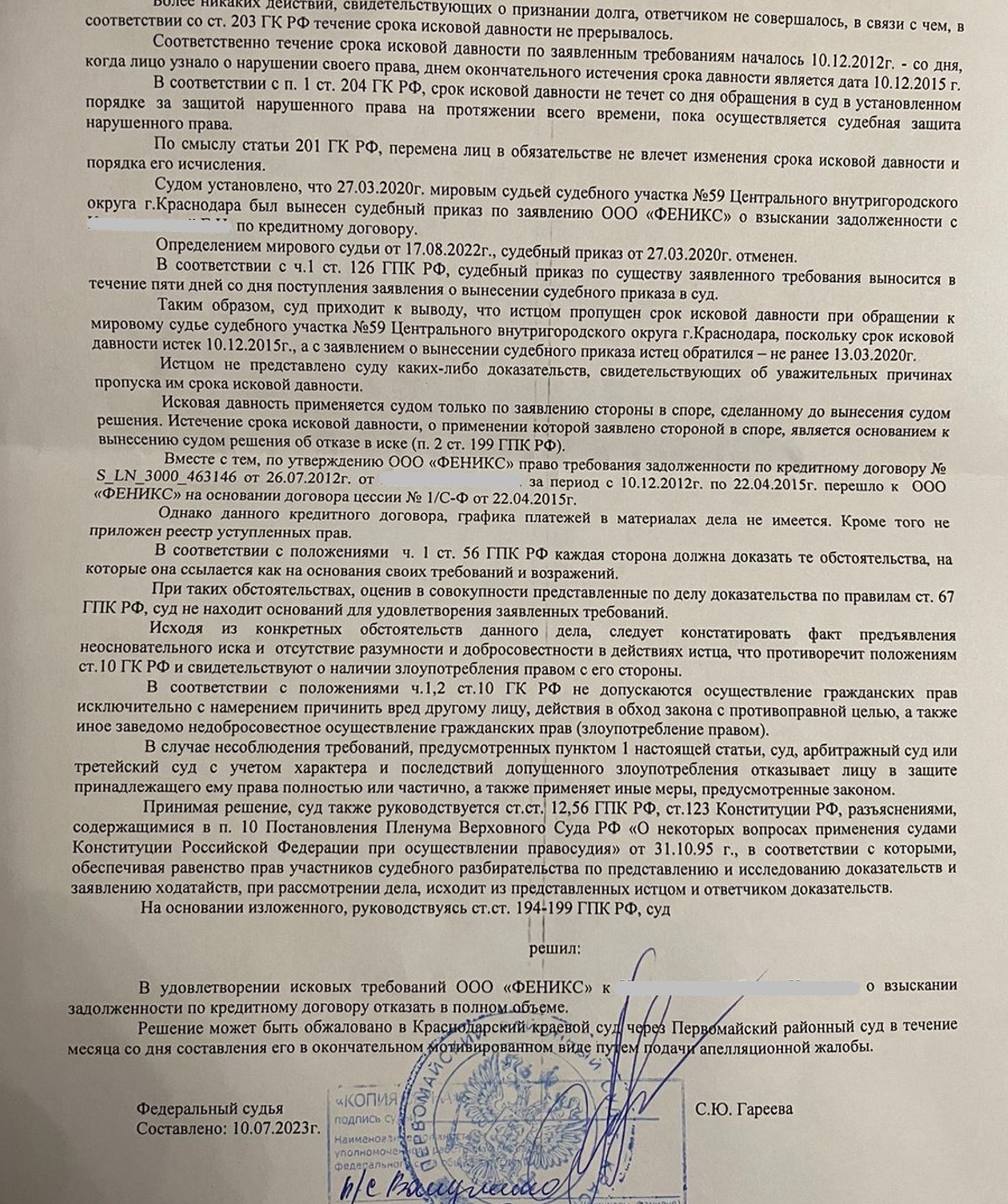 В производство Первомайского районного суда г.Краснодара Краснодарского края поступило исковое заявление ООО «Феникс» к нашему клиенту о взыскании задолженности по кредитному договору, заключенному между ответчиком и АО «Связной банк». Истец ссылается на то, что АО